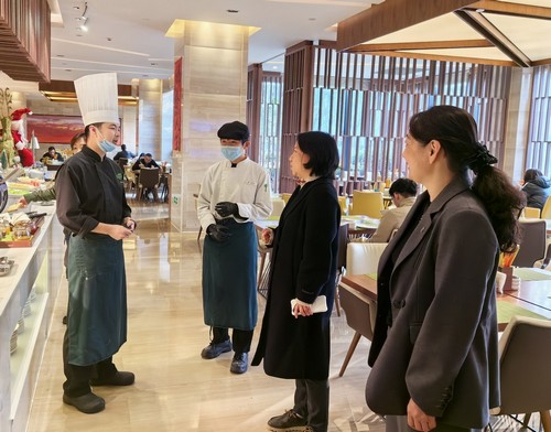 为深化产教融合、推进校企协同育人,切实提升学生专业实践能力与职业素养,近日,无锡惠爱实验学校校领导带队,组织洲际惠喑学院教师团队,先后赴上海、昆山、苏州、无锡等地的洲际酒店集团旗下酒店及“王兴记”等多家优质合作企业,看望正在开展顶岗实习的高星级饭店运营与管理专业2023级全体学生,并实地调研实习开展情况。顶岗实习是实施高星级饭店运营与管理专业人才培养方案的重要组成部分。为此,学校与合作企业经过多轮研讨,紧密对接专业核心课程与岗位实际需求,为学生精准匹配了客房服务、餐饮运营等多个一线实习岗位。实习启动前,学校专门组织岗前培训,内容涵盖职业礼仪、岗位安全规范、突发事件应急处理等,全面提升学生的岗位适应力;企业方也派出资深主管开展入职指导,系统讲解工作流程与服务标准,助力学生顺利完成从“校园人”到“职场人”的角色转变。实习期间,学生们展现出扎实的专业基础、良好的职业素养和积极主动的学习态度。在客房部,他们熟练掌握房间清洁、布草更换、设施检查与维护等操作流程,严格执行酒店卫生与质量标准;在餐饮部,他们积极参与宴会策划、餐桌摆台、菜品介绍及客户服务等工作,在真实工作场景中锤炼服务技能、积累实战经验。企业导师采取“一对一”带教模式,耐心指导、及时反馈,帮助学生快速融入团队、适应岗位节奏。不少学生凭借踏实肯干的态度和出色的表现,赢得了企业的充分肯定与好评。顶岗实习不仅是学生将理论知识转化为实践能力的关键平台,更是无锡惠爱与企业共育人才的重要纽带。洲际惠喑学院自成立以来,始终坚持“以岗育人、以训促学”的培养理念,通过真实岗位历练,帮助学生提前熟悉行业生态、明确职业方向,为未来高质量就业奠定坚实基础。下一步,学校将持续跟踪学生实习动态,深化与洲际酒店集团、“王兴记”等合作单位的协同育人机制,优化实习内容与过程管理,不断推动产教融合向更高水平发展,努力为现代服务业培养更多具备专业技能、职业精神与人文情怀的高素质技术技能人才。 来源:教务处 撰稿:阚 鹏摄影:阚 鹏;酒店工作人员 编审:办公室