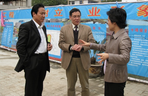 2009年12月7日下午,市人民政府华博雅副市长、唐喜泉副秘书长来到正在建设中的学校工地视察新校区的建设。