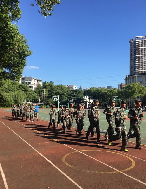 我们早早地来到了操场,开始了第二天的军训。教官还是一如既往地严格。先是例行跑步,教官也陪着我们跑。跑完之后同学们满头大汗,大口喘气,教官一点也看不出累的样子,还是非常精神,像是钢铁似的。
