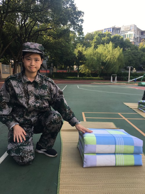作为本学期的一名护旗手,我一直向往着能体验军旅生活,于是日思夜想的军训终于到来了。队列、行进、军体拳,这些对我来说都不是困难,我最大的困难就是内务。我仔细观察了教官叠被子的每一个动作,并记在心里。但是自己叠的时候却怎么也叠不好,不是距离不对,就是高低不平,棱角永远也叠不出来,被子一点也不听话。正当我愁眉不展的时候,教官来到我身边,让我远距离地先观察被子的问题所在,然后手把手教我折叠方法。在教官的帮助下,被子突然很听话,很快就变得有模有样了。后来教官告诉我,他们经过了许多年日复一日的练习才能有这样“让被子听话”的技巧。原来,叠被子这样一件小事都藏着让人深思的大学问啊,我从军训中收获满满。