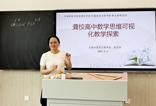 吴薇老师的讲座《建构逆向思维脚手架:聋生数学能力发展的新模态》提出思维训练新视角;倪晓燕老师探讨《问什么?怎么问?有效提问对高效课堂的影响》,强调课堂提问艺术;钱贤纱老师分享《聋校高中数学思维可视化教学探索》,助力抽象思维具象呈现。