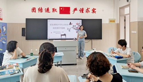 陈静老师作《试论聋校中学古诗词深度教学策略》讲座,探讨古诗词教学深化之道;赵莲红老师分享《低年级段听障及多重障碍学生绘本阅读和写话训练的策略探索》,关注低龄学生语言基础能力培养;黄立英老师以《创新教于无声处:听障学生作文教学中创新能力的培养》为题,聚焦作文教学创新;卢袁芳老师带来《指向审美创造的语文跨学科教学探索》,拓宽语文教学边界。
