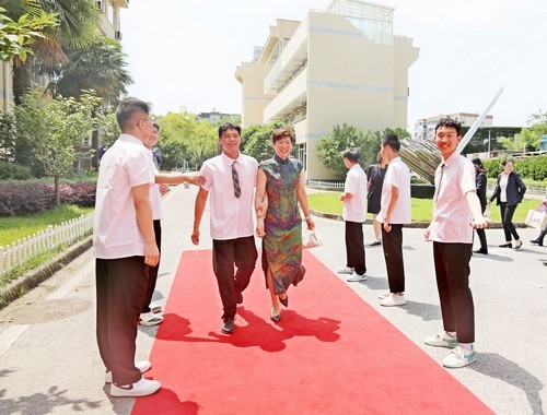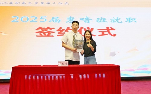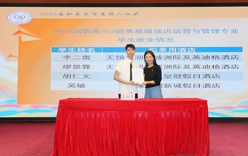三年来,高考班的学生专注学业,全部考取心仪的大学;职业班的学生苦练技术,提升了职业素养。这天,洲际酒店集团中国东区区域总经理姜丽红女士来到现场,为职业班的学生送来祝福;职业班学生与洲际酒店签下人生的第一份工作协议。无锡惠爱实验学校副校长周嬿为“洲际惠喑学院”学生胡仁文、李二雷颁发奖学金。党支部书记尤志新寄语孩子们:“征途漫漫,母校是你们永远的港湾!未来,无论你们飞得多高多远,身后总有母校深情的凝望。”