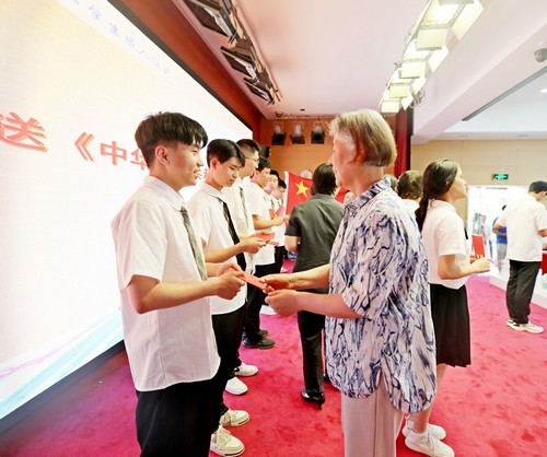 十八岁,意味着已成为一个法律意义上的完全民事行为能力人,拥有了法律赋予的各项权利。同学们将以全新姿态书写人生篇章。在这重要的日子里,学校邀请无锡市中级人民法院关工委的嘉宾为同学们颁发《中华人民共和国宪法》。关工委委员、刑一庭杨柳法官带领高三学生在国旗下完成庄严的成人誓言,并以一位法律工作者和前辈的身份,给同学们送上期许。“明心远志”公益助学基地的代表、华夏银行无锡分行团委、扬名街道办事处分别向同学们赠送毕业礼物。