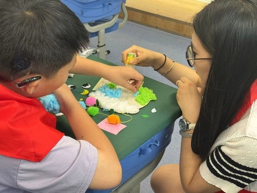 “地球的森林资源正以怎样的速度减少?”“哪些日常行为能有效减少碳排放?”志愿者们精心设计的问题兼具知识性与趣味性,像一把把钥匙,打开了孩子们探索环保世界的求知之门。同学们踊跃举手,或用清晰的言语、或用灵动的手语,自信满满地表达自己的想法,稚嫩的脸上写满了对知识的渴望,热烈的互动让整个教室洋溢着青春与活力。
