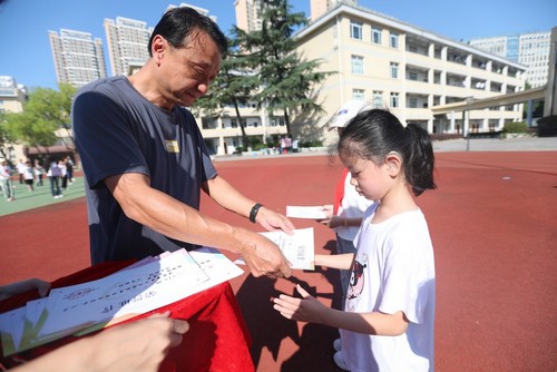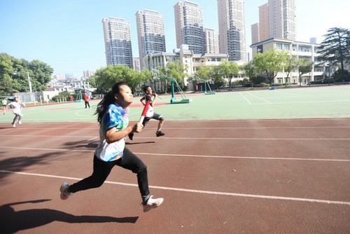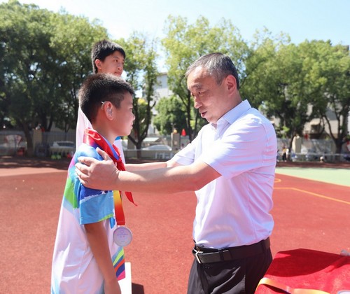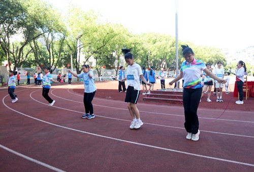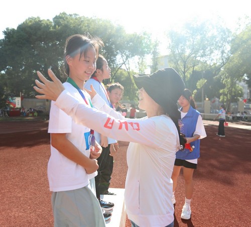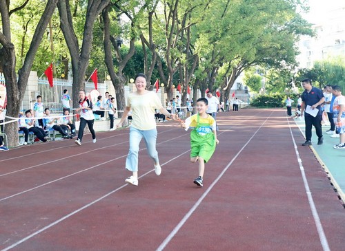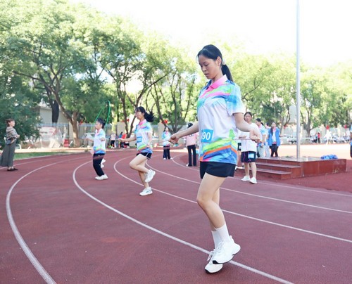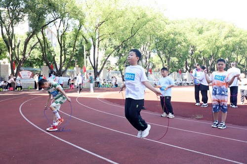 值得一提的是,本次运动会首次为小学段视障学生增设专属项目。他们随节奏跳绳、与家长携手亲子跑,在运动中绽放独特光彩。