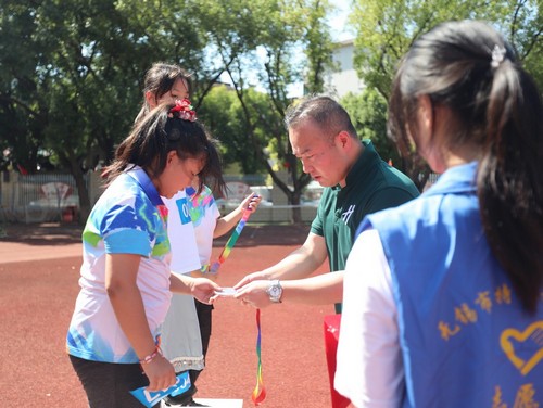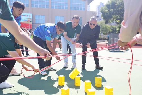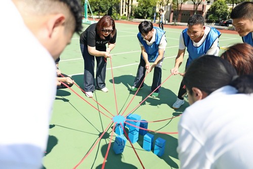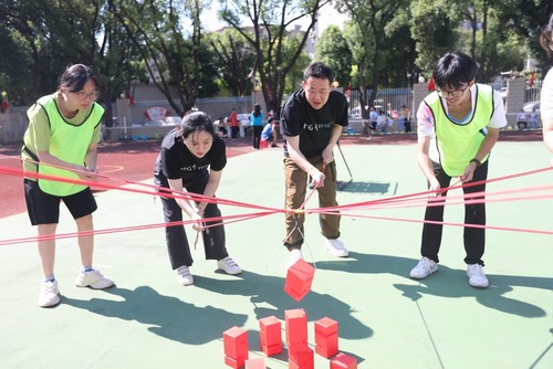 更令人暖心的是,洲际酒店延续公益善举,再次专程来校助力运动会,用实际行动传递企业爱心。活动中,酒店员工与职高班同学们共同参与“不倒森林”“九宫格”“合力建塔”等互动游戏,为赛场增添了别样温情。