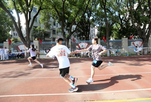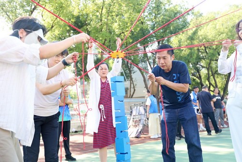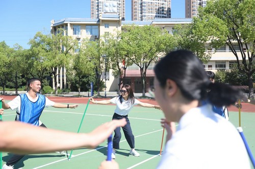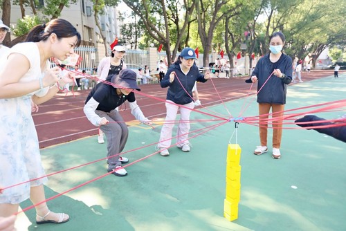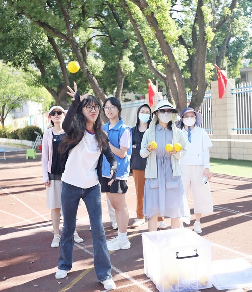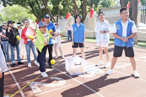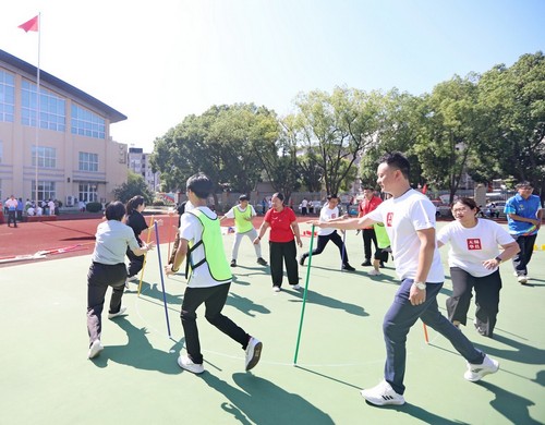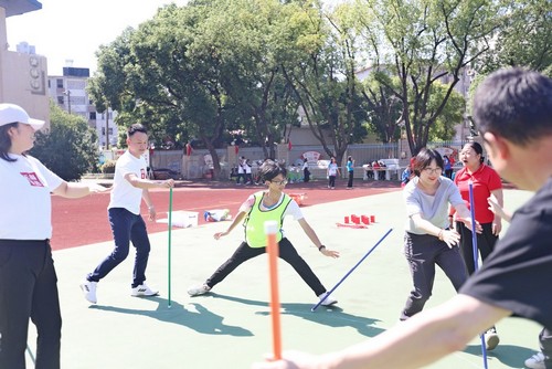 教工运动会同样精彩纷呈。“九宫格投准”考验精准度,“背夹球接力”注重协作力,“合力建塔”讲究凝聚力,老师们放下平日的严谨,在学生此起彼伏的欢呼中,尽情享受运动带来的活力与喜悦。