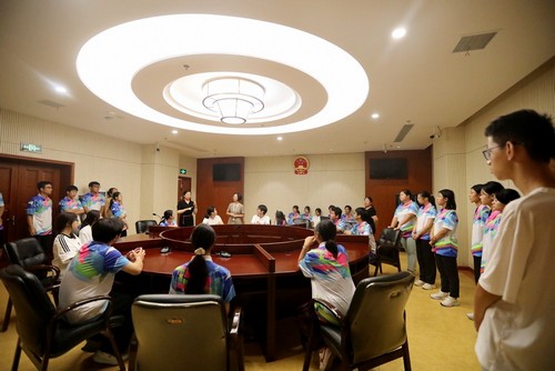 活动在法院关工委华俭学、龚育勤两位同志的关心与引导下有序开展。同学们首先了解了法院的机构设置、工作职能以及“努力让人民群众在每一个司法案件中感受到公平正义”的深刻内涵。