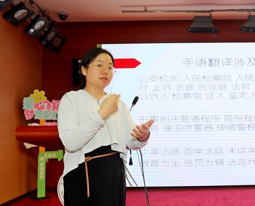 为了学生有更好的体验,两家单位提前就参观路线、活动流程及注意事项反复商讨,并进行实地勘探。学校翻译老师专门学习了讲解内容和“公安机关”“合议庭”“少年法庭”“刑事责任年龄”等法律术语的手语,并带领学生提前学习不熟悉的法言法语,确保所有学生都能清晰理解活动内容。
