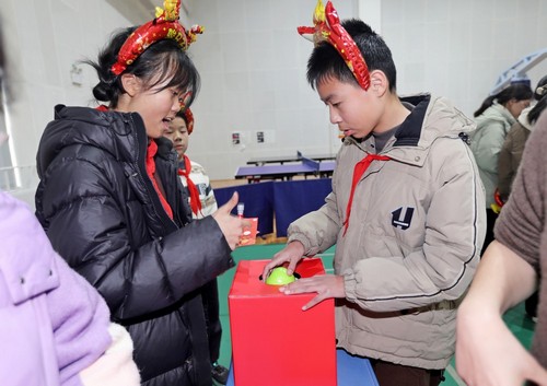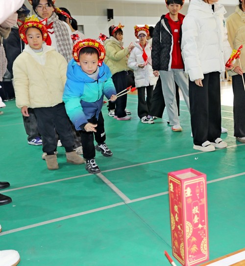 活动精心设置了好运投壶、欢乐套锦鲤、新年拓印、吉祥摸福袋等富有中华传统文化色彩的游戏,引得同学们摩拳擦掌,跃跃欲试。大家或三五成群组队挑战,或两两结伴并肩作战: