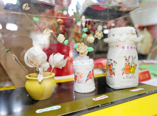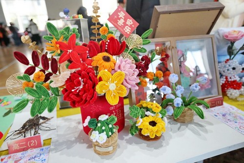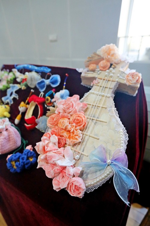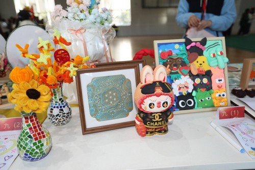 与此同时,本届校园艺术节各班风格迥异的艺术作品也集中进行展示,供师生欣赏及投票。其中,学生手工作品尤为引人注目,它们种类丰富、构思精巧、制作精良,皆在细节中流露出手工的温度与设计的灵气,令人在驻足观赏间,不禁赞叹于同学们将想象落于工艺品的匠心与执着。