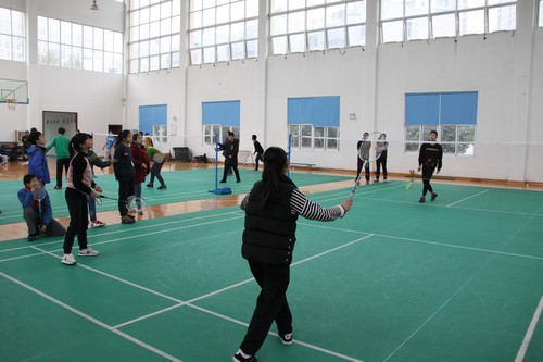 在室内体育馆里,梁溪体校的三位羽毛球老师带着他们的羽毛球高材生,传授六七年级的孩子们羽毛球技术。孩子们分为十几组,每组2人,和体校的高材生PK。说是PK,其实一直是体校生让着孩子们,在一个一个球的让孩子们练习。车轮大战后,很多人问:“大哥哥,你累吗?”他阳光的脸上,满是汗水。可是,还是那么精神,他说:“不累,和平时的训练比起来,这已经是小case啦!”小朋友们纷纷竖起大拇指,觉得好崇拜大哥哥哦。