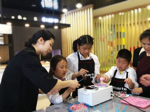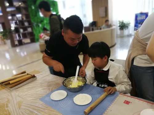活动现场,海尔专卖店邀请了专业的烘焙老师,教小朋友们制作简单的点心。虽然动作生疏,擀面也不均匀,但是小朋友们兴致勃勃,都积极参与其中,最终在家长与老师的帮助下,制作了棒棒糖蛋糕和饼干。