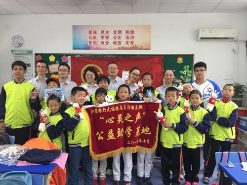 在儿童节到来之际,江苏银行扬名支行的爱心志愿者走进无锡特校,与二年级的小朋友开展了结对活动。