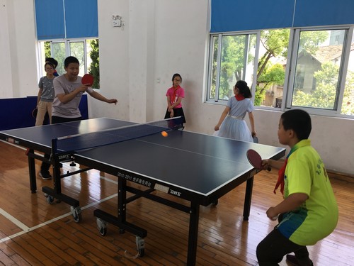 首先,大家分组进行乒乓球对抗赛。对抗赛中,让我们真正见识了什么是乒乓球运动的有生力量,看他们的个头比乒乓球台高不了多少,但水平却很不一般,动作标准——步伐迅速到位——技术娴熟,‘振华’精神名不虚传啊!再看我们特校的队员们,也不示弱,你来我往,场面好不热闹。