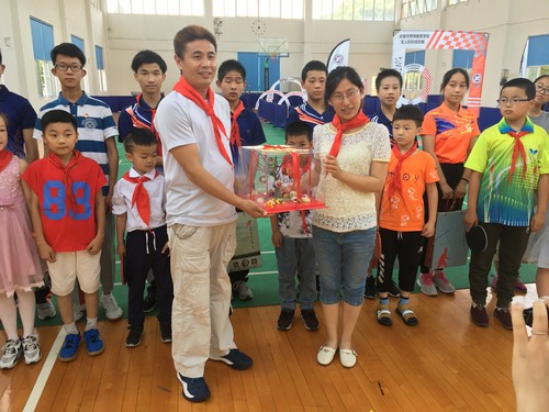 6月1日中午,国家体育总局副局长蔡振华先生的母校——无锡市花园实验小学的乒乓球小队员们,踩着节日的盛气,给我们特校的乒乓球爱好者送来了节日的问候和礼物。