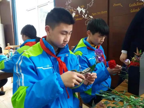 叔叔阿姨们特意请来了专业的花艺老师,教学生们制作信封花盒。花艺师给同学们讲解相关知识并指导如何插花,叔叔阿姨们手把手指导帮助,让孩子们为自己喜欢的女老师送上一份感恩的鲜花作为回馈。