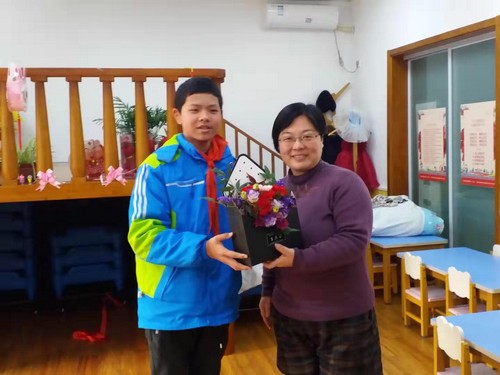孩子们精心挑选了花材,为自己最爱的那位老师制作了感恩的花,然后,去献给这10年来一路帮助自己成长的老师们,每陪孩子走一站,随行的江苏银行叔叔阿姨都感觉有满满的爱和感动,他们感受到了学校老师这10多年来对孩子的爱和帮助。