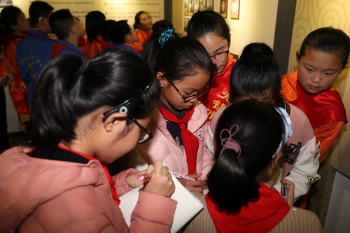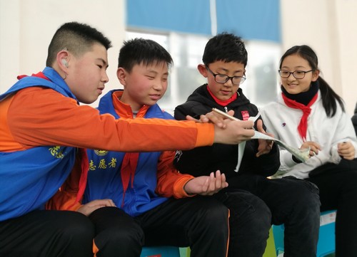 这天,特校的孩子们作为志愿者,在老师的指导下,带领好朋友参观校史室,让他们感受特殊教育的发展历程;参观功能教室,了解学校的特色课程。