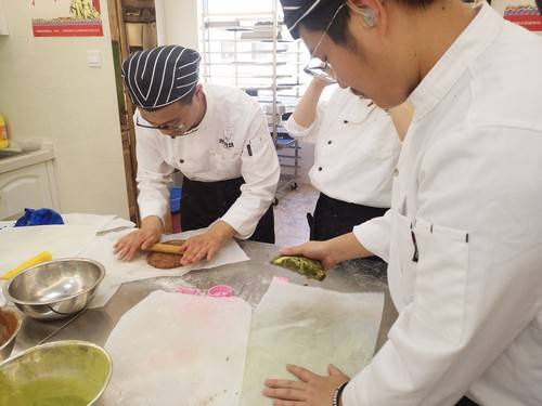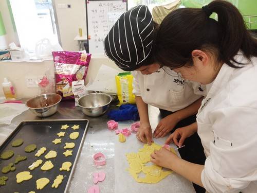 公益社的同学们利用上午的时间,在学校烘焙教室内完成了一场甜蜜DIY:有3个戚风蛋糕,还有50份口味不同的卡通饼干——原味、抹茶味和巧克力味。下午四点,学生们将亲手制作的糕点作为礼物,送给如家颐养院的老人们。